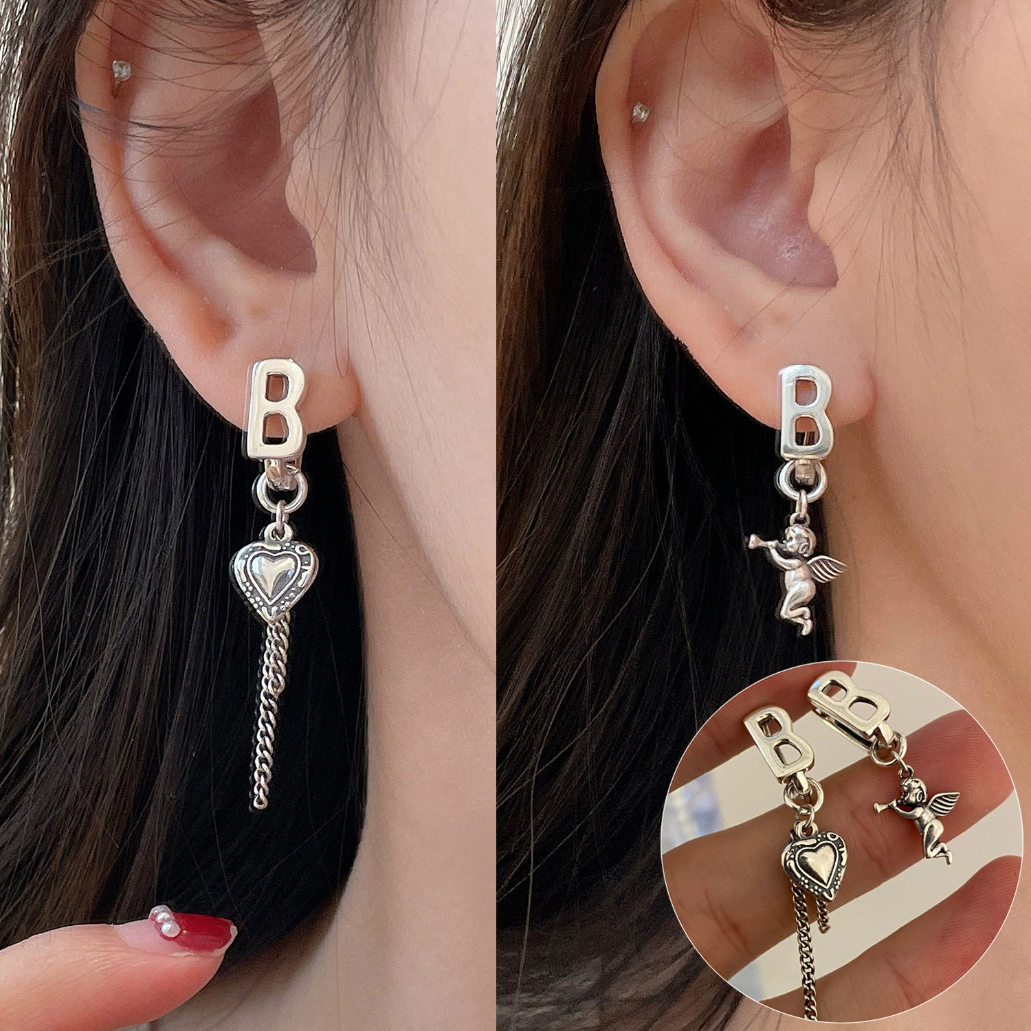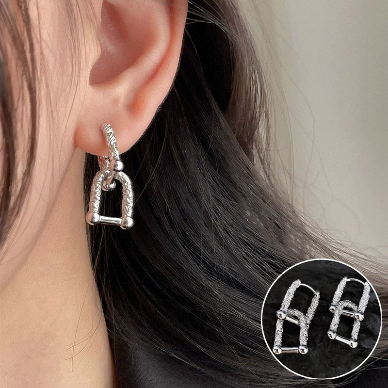 | nameOriginal | Korean version S925 silver asymmetric earrings for women retro fashion tassel letter square earrings earrings hip hop earrings |
