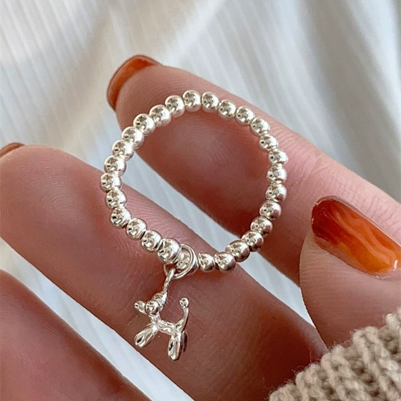 | nameOriginal | Korean version S925 silver ball elastic ring women's fashionable temperament balloon puppy pendant ring ins index finger ring trendy |