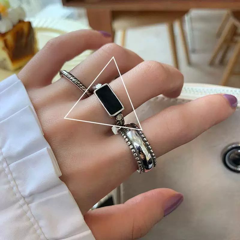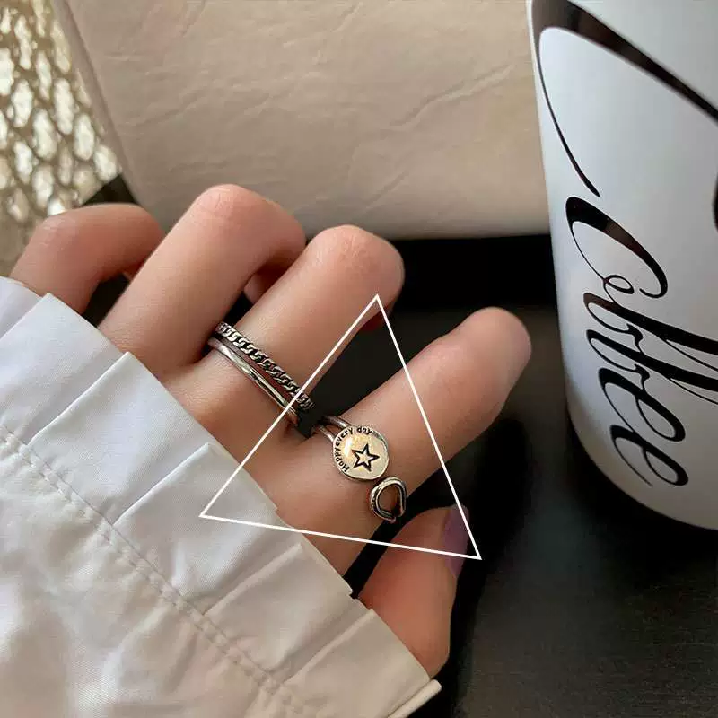 | nameOriginal | Korean version S925 silver geometric irregular ring for women retro fashion letter star ripple letter open index finger ring |