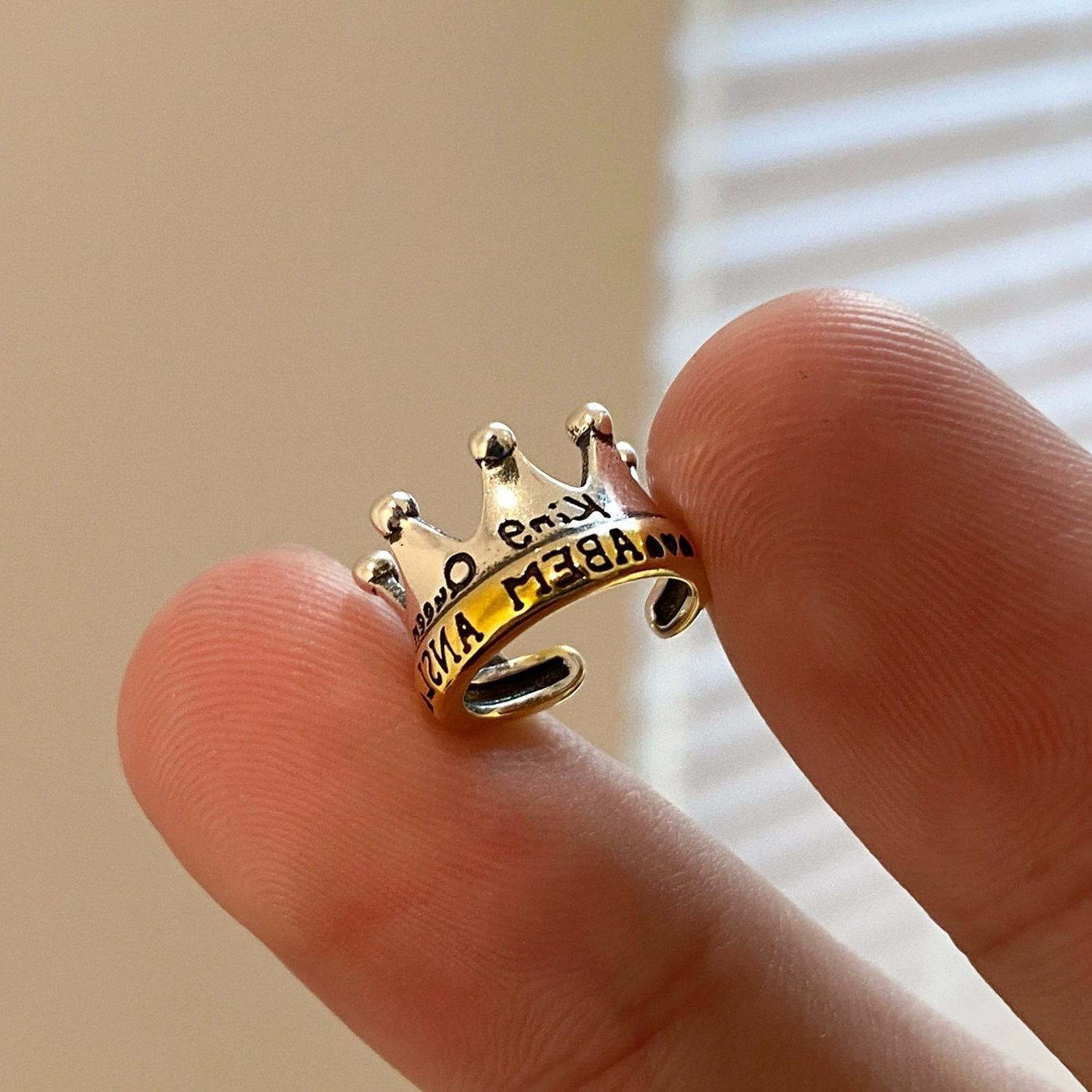 Korean version S925 silver personalized crown without pierced ear bone clip for women retro fashion letter hip-hop earrings