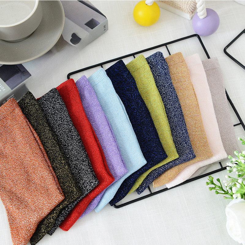 | nameOriginal | Korean women's socks spring and summer Japanese gold and silver silk socks ladies solid color thin breathable tube women's socks wholesale |