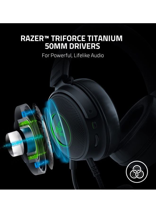 | nameOriginal | Kraken V3 Wired USB Gaming Headset – Triforce Titanium 50mm Drivers, Hybrid Fabric & Leatherette Memory Foam Cushions, Detachable HyperClear Mic – |