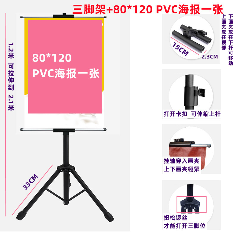 Kt board display rack telescopic lifting bracket billboard display board vertical floor-standing double-sided poster hanging shaft hanging easel