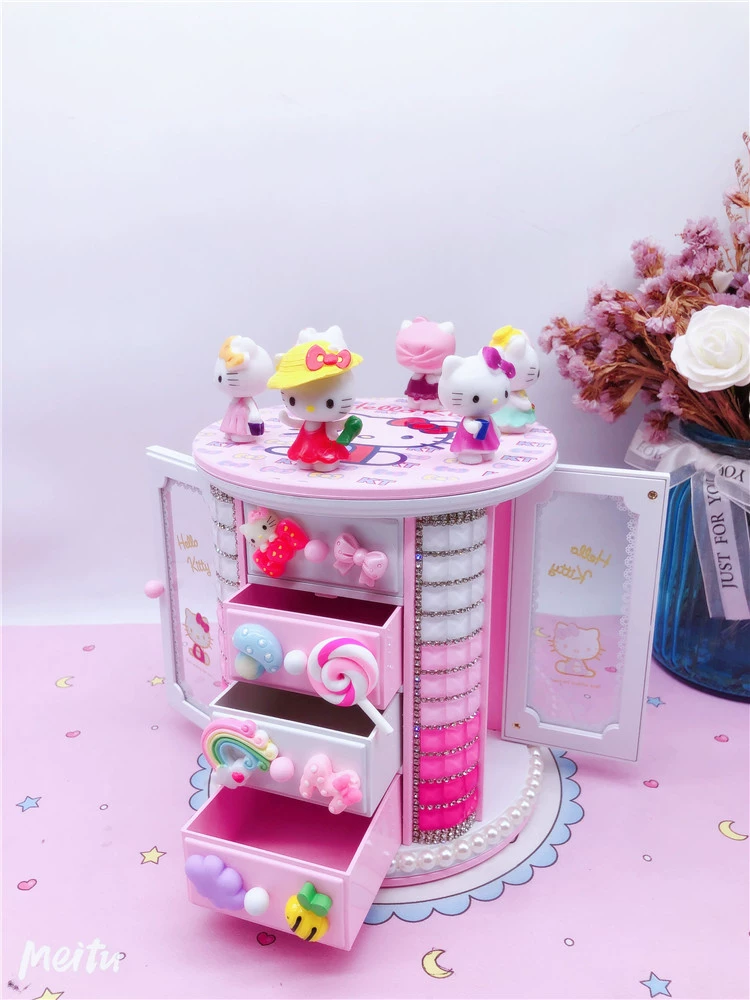 | nameOriginal | KT cartoon children's jewelry box kitty cat rotating hair accessories storage box princess birthday gift music box girl |