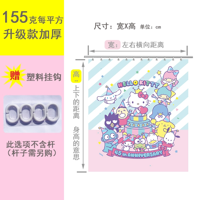 KT cat door curtain cartoon shower curtain bathroom shower curtain Hello Kitty decorative hanging cloth background Hello Kitty hanging curtain
