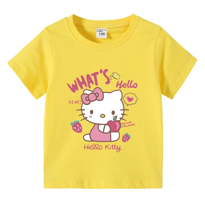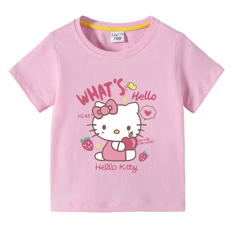 kt Cat Hello Kitty foreign trade girls' clothing children's summer short-sleeved T-shirt baby girl cartoon half-sleeved cotton top trendy