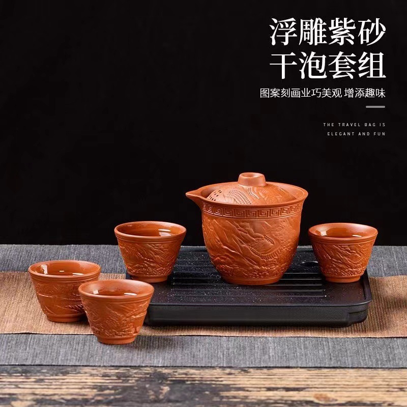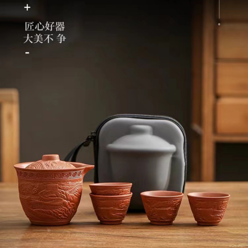 | nameOriginal | Kuaike Cup Travel Tea Set Outdoor Portable Purple Sand Pot Four Cups Dehua Tea Set Tea Cup Gift Gift |