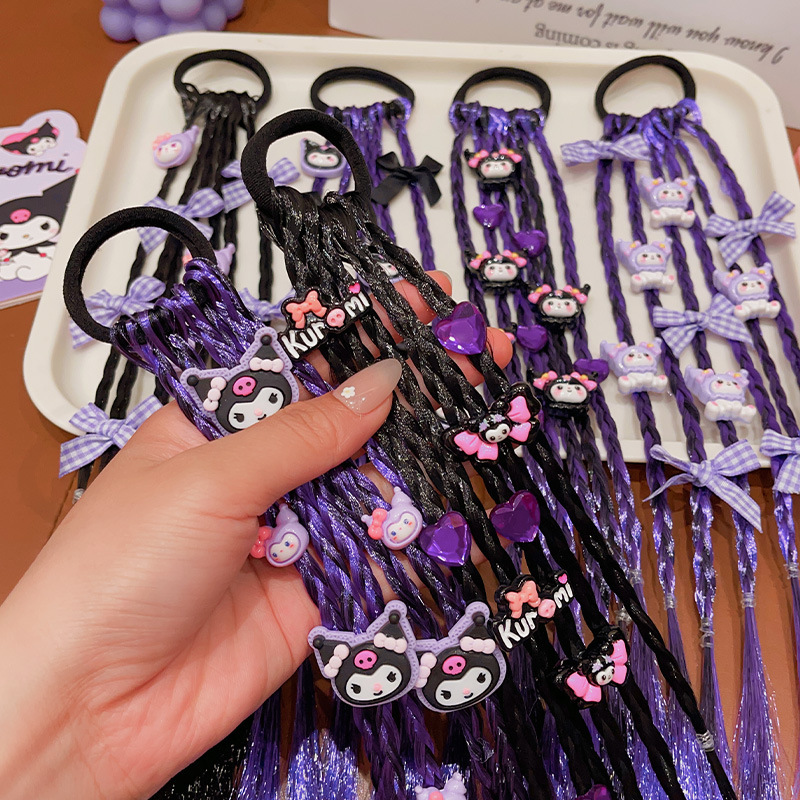 Kulomi children's cartoon wig braid hair ring little girl sweet cool twist dirty braid hair artifact rubber band hair rope