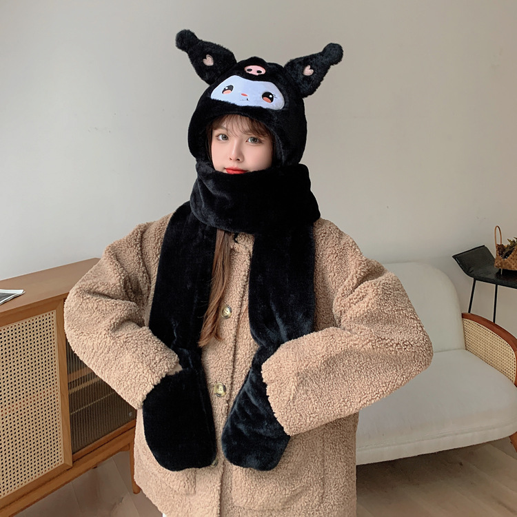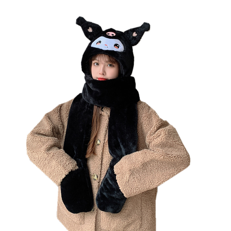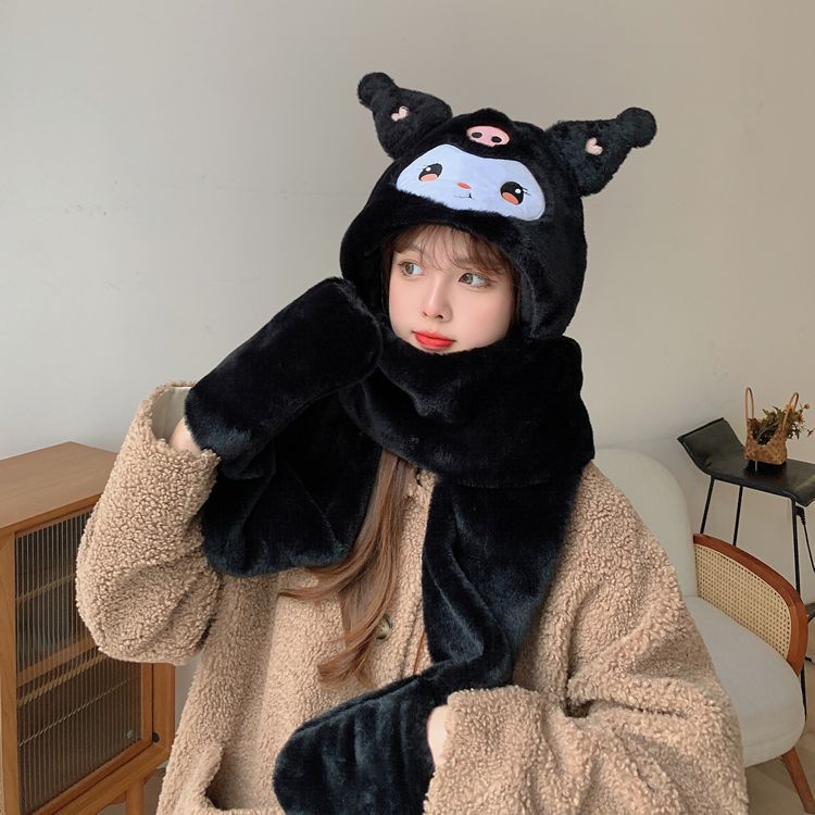 | nameOriginal | Kumi scarf hat gloves three-piece one autumn and winter students show white windproof warm cartoon Mao black scarf |