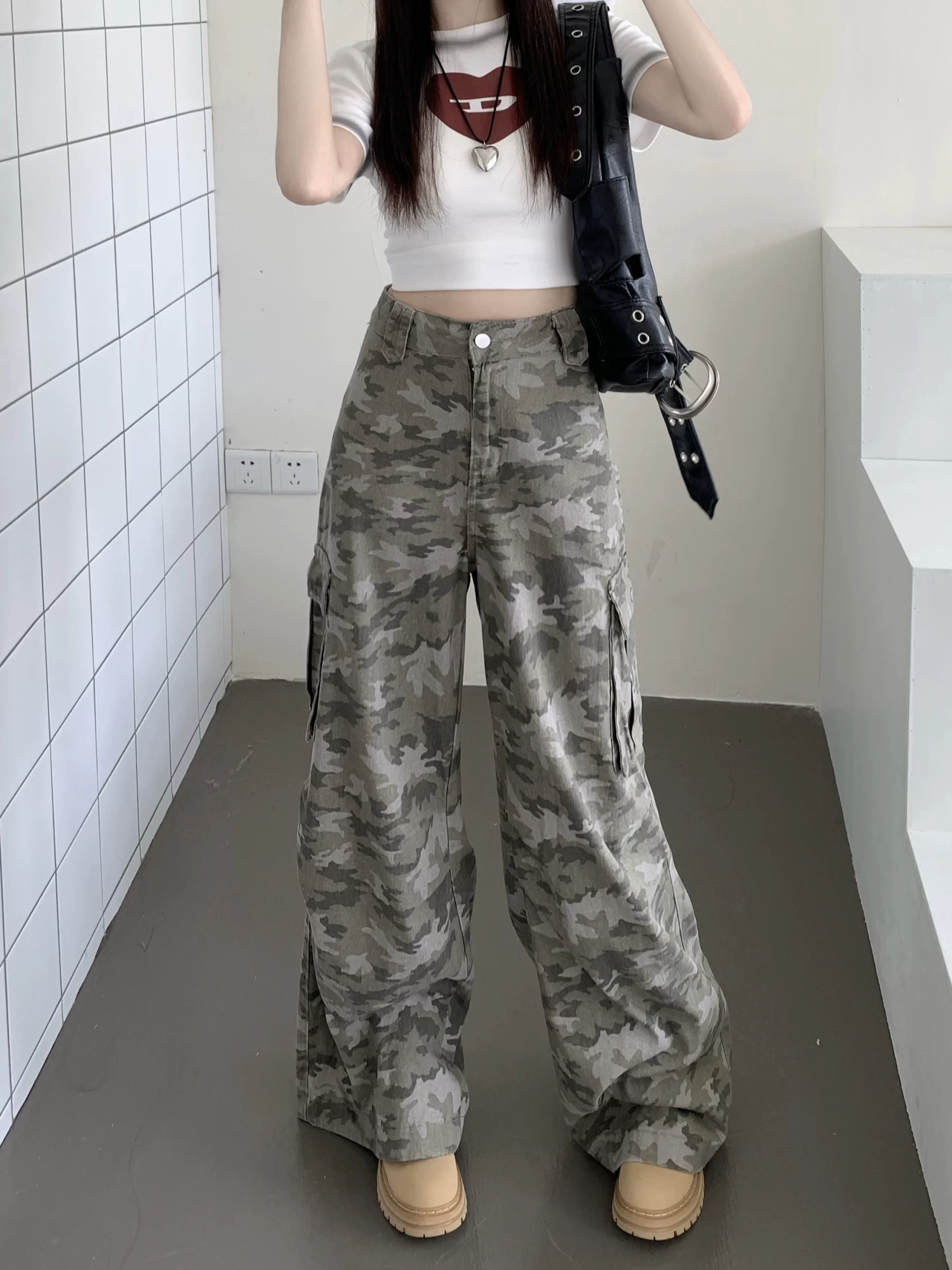 | nameOriginal | kumikumi American camouflage drape wide-leg overalls |