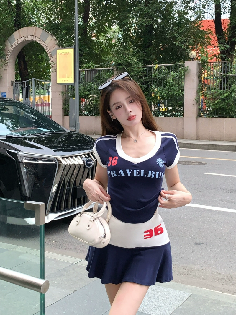 | nameOriginal | kumikumi American contrasting sports A-line skirt T-shirt |