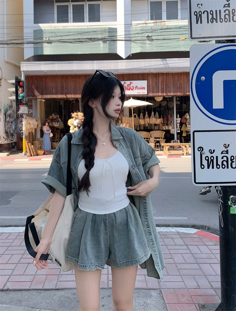 | nameOriginal | kumikumi blue distressed washed denim shirt |