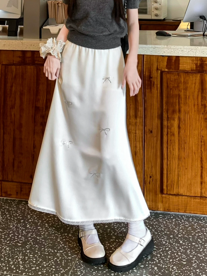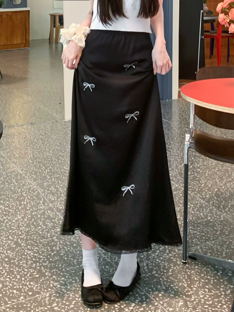 kumikumi bow summer all-match long skirt lace