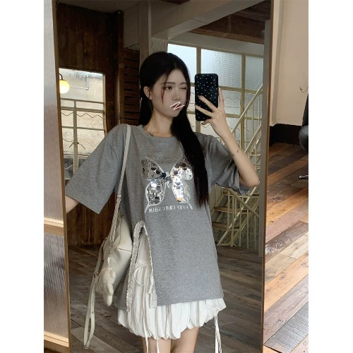kumikumi butterfly A-line tutu skirt sequined T-shirt