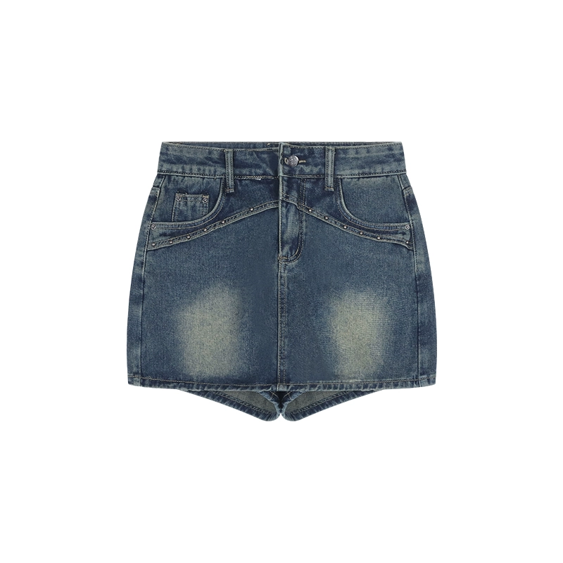 kumikumi contrasting color high waist rivet shorts embroidered