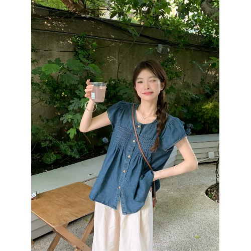 | nameOriginal | kumikumi denim single-breasted casual short-sleeved shirt |