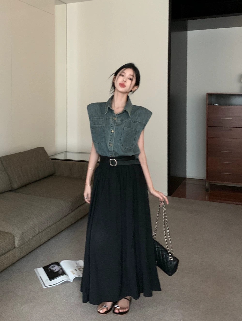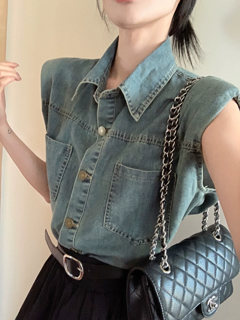 | nameOriginal | kumikumi design lapel A-line denim vest |
