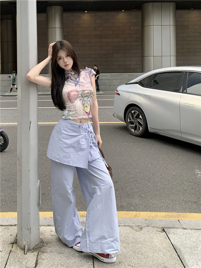 kumikumi design loose floor mopping pants fake two pieces
