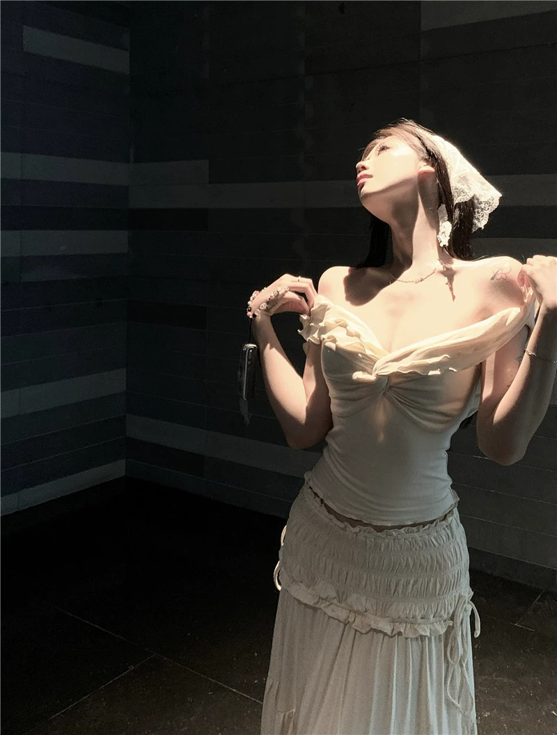 kumikumi design twist lace A-line skirt T-shirt