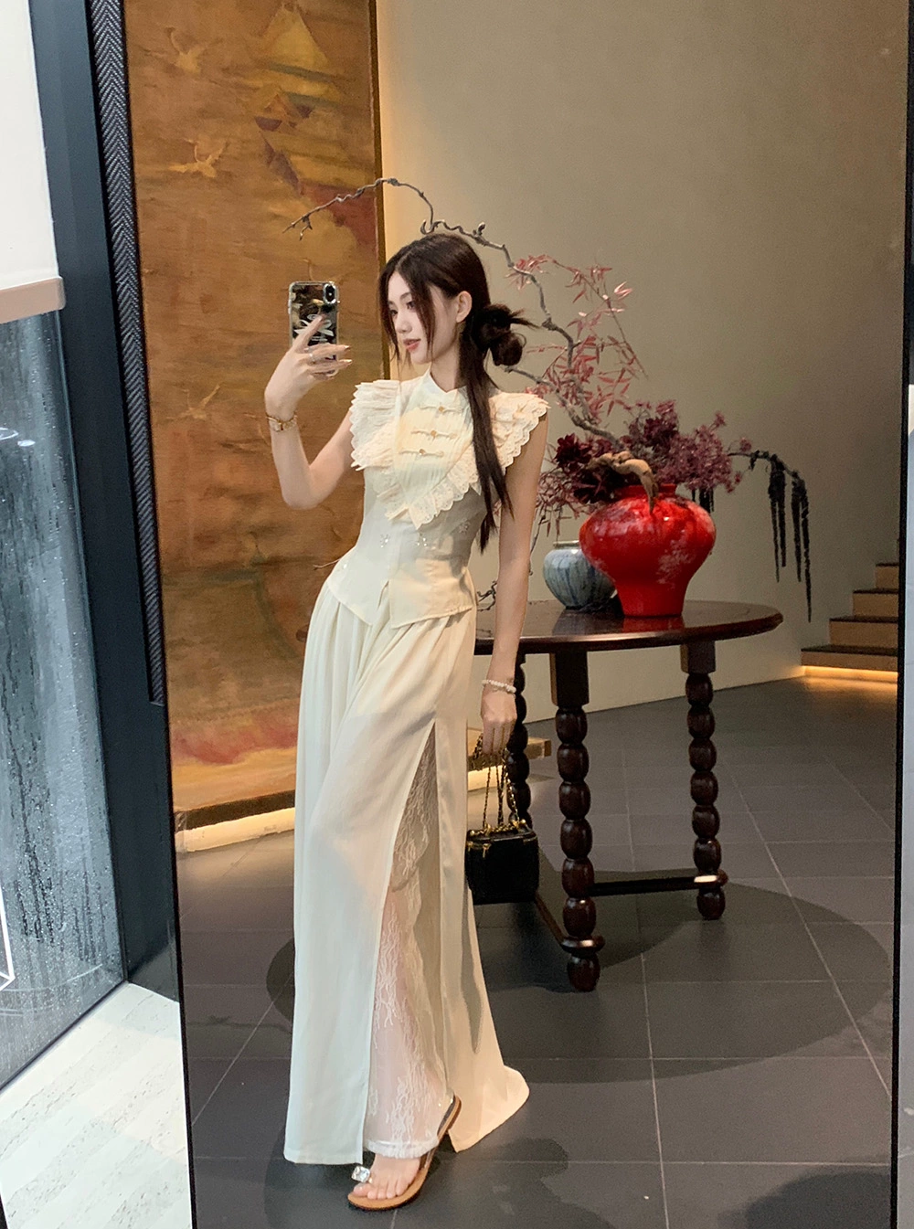 | nameOriginal | Kumikumi disc buckle lace splicing casual pants embroidered |