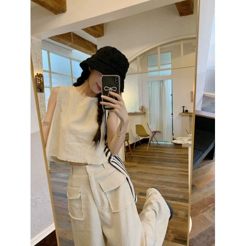 | nameOriginal | kumikumi distressed raw edge sleeveless two-piece tank top |