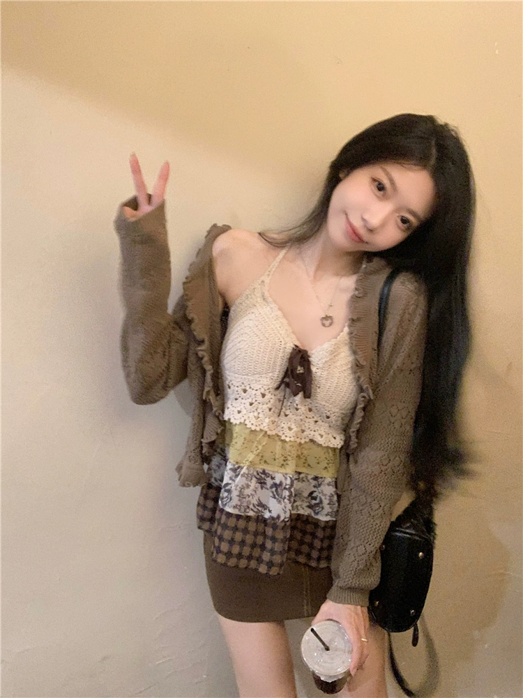 | nameOriginal | kumikumi ear-hemmed halter top knitted jacket |