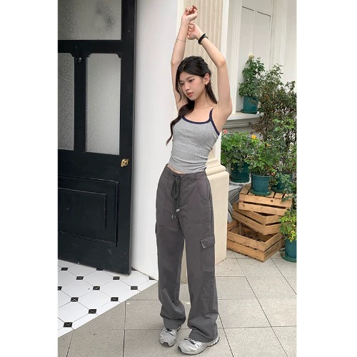 | nameOriginal | Kumikumi early spring high-waisted floor-length pants solid color workwear |