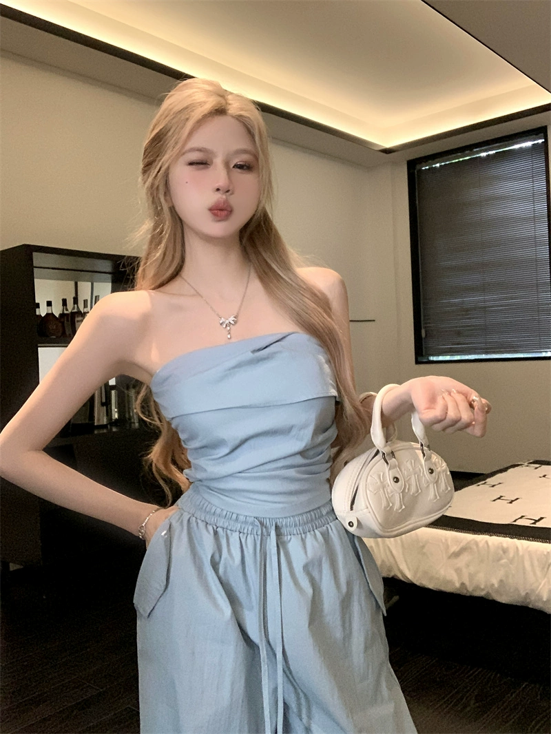 | nameOriginal | kumikumi elastic waist overalls two piece set with tube top |