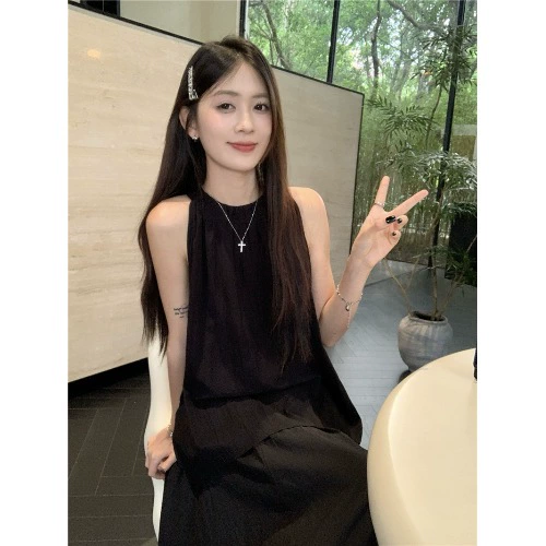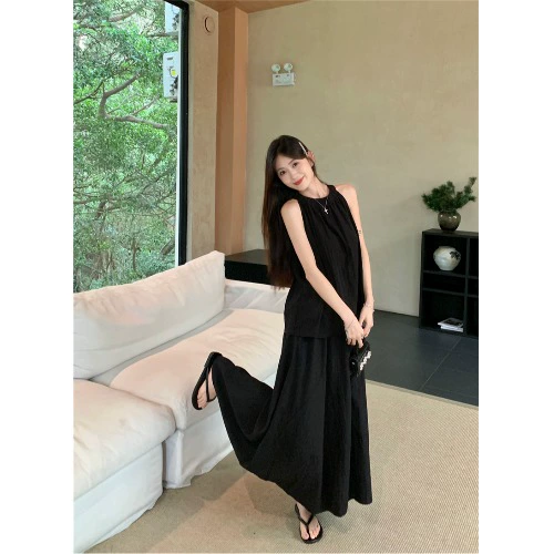 kumikumi gentle style long skirt two-piece halterneck set