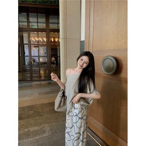 | nameOriginal | kumikumi gray off-shoulder casual two-piece T-shirt |