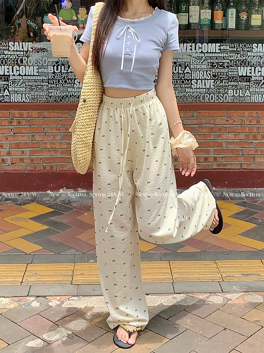 | nameOriginal | kumikumi high waisted loose floor mopping pants with bow |