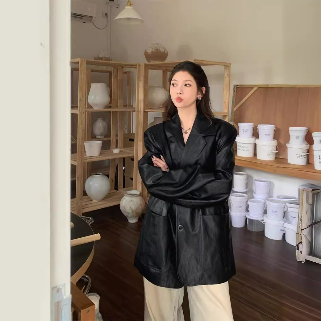 | nameOriginal | kumikumi Hong Kong Style Vintage Suit Leather Jacket Women's Spring Niche Loose Slimming Casual Top |