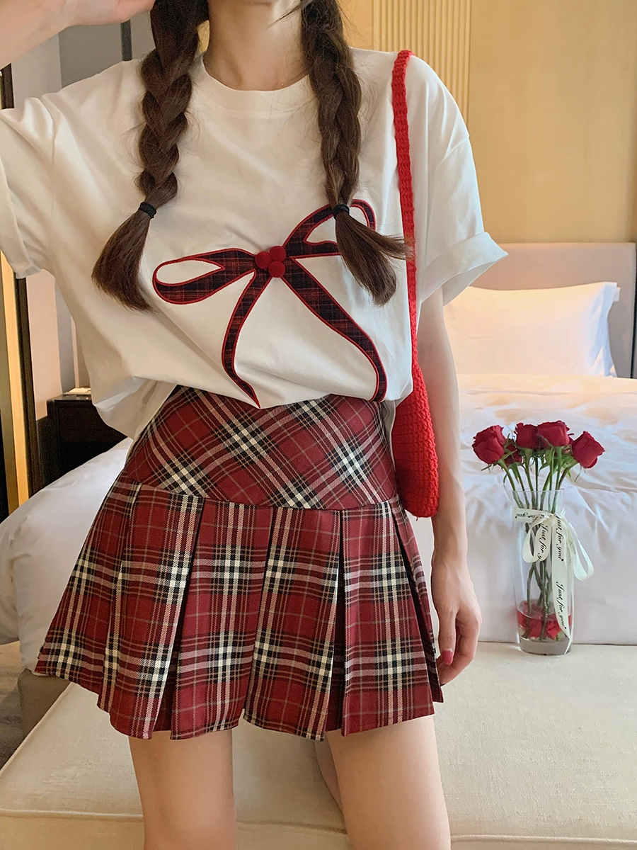 kumikumi letter female summer plaid bow