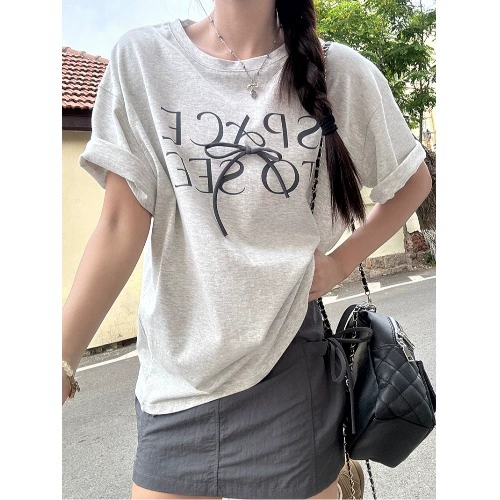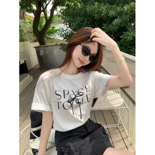 | nameOriginal | kumikumi letter print short-sleeved T-shirt with bow |