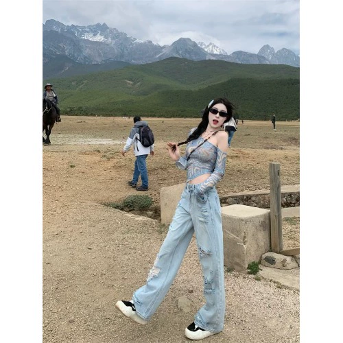 | nameOriginal | kumikumi off-shoulder tie-dye ripped hole print T-shirt |