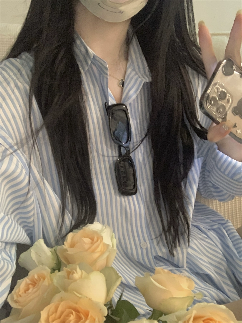 | nameOriginal | kumikumi pink striped loose long-sleeved shirt |