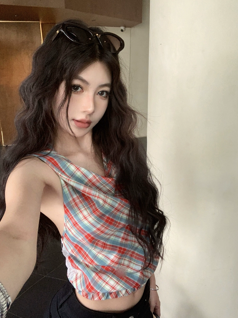 | nameOriginal | kumikumi plaid hooded niche swing collar vest |