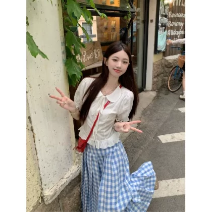 kumikumi plaid two-piece doll collar shirt