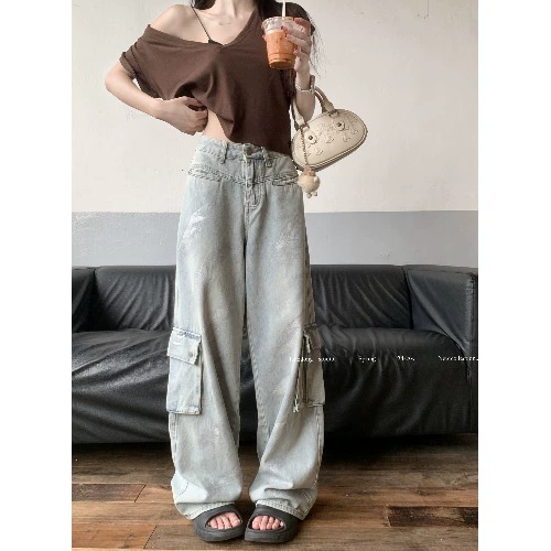 | nameOriginal | kumikumi pocket distressed high waist cargo wide leg pants |
