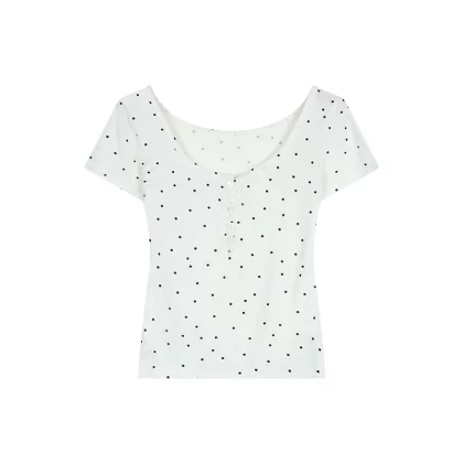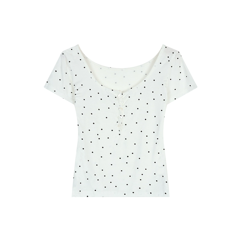 kumikumi polka dot early spring lace short-sleeved T-shirt
