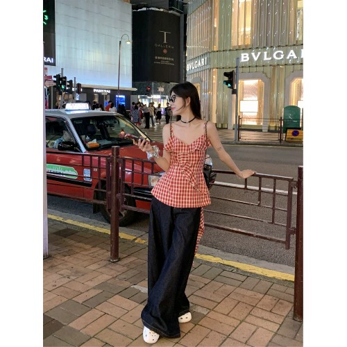 | nameOriginal | kumikumi ruffled plaid denim trousers suspenders |