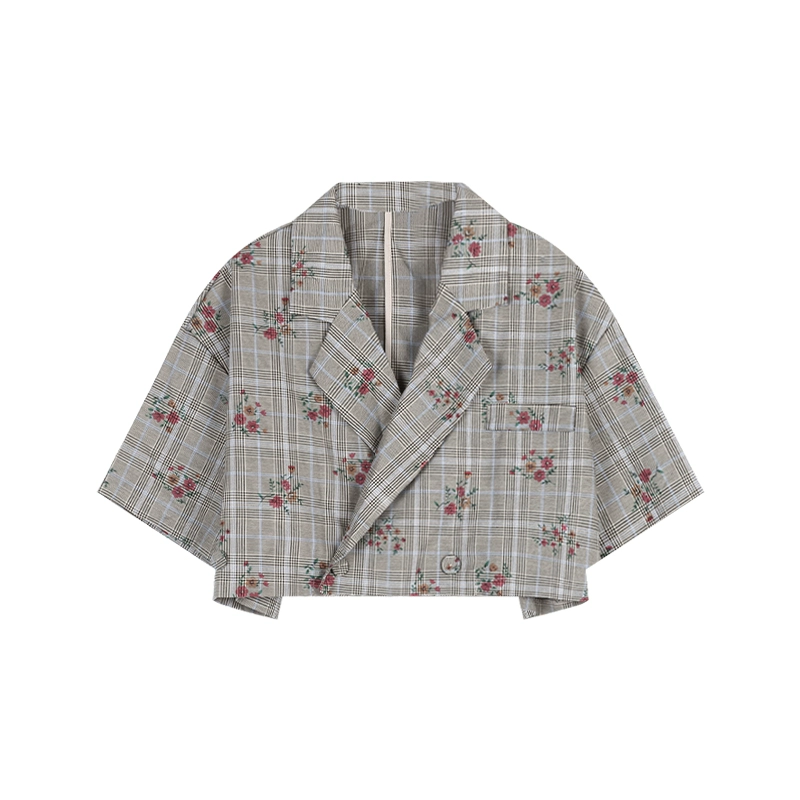 | nameOriginal | kumikumi short-sleeved shirt plaid A-line suit collar |