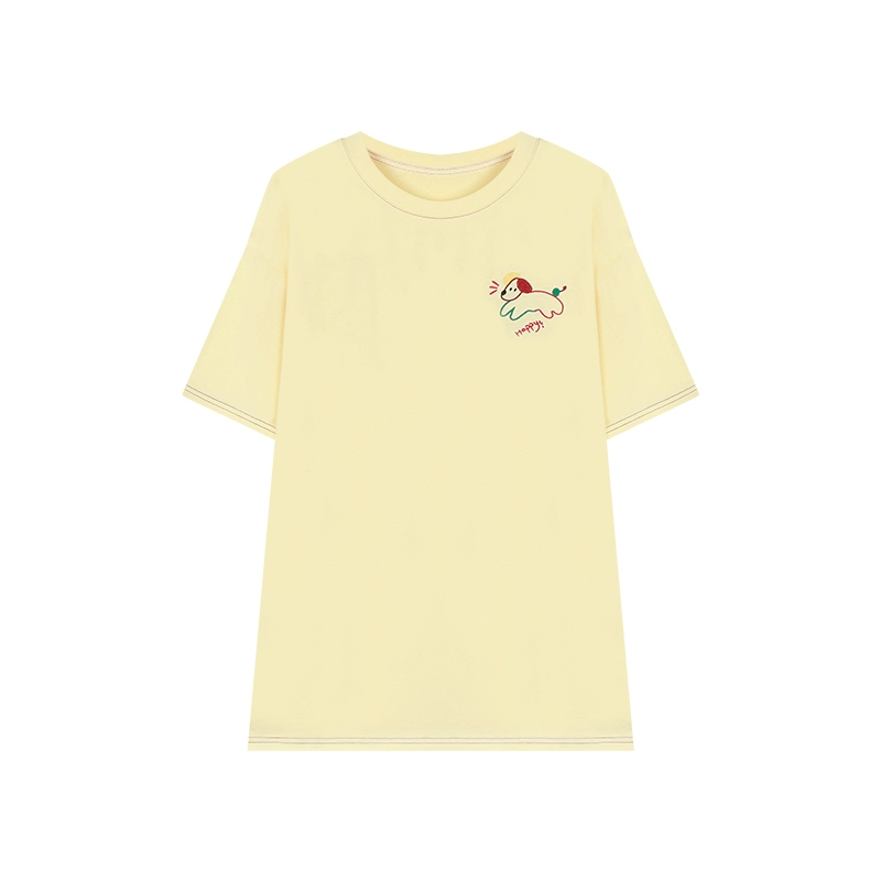 kumikumi short-sleeved T-shirt with polka dot plaid embroidery