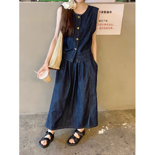 | nameOriginal | kumikumi sleeveless denim A-line skirt vest |