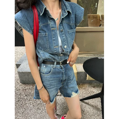 | nameOriginal | kumikumi sleeveless denim design fringed vest |