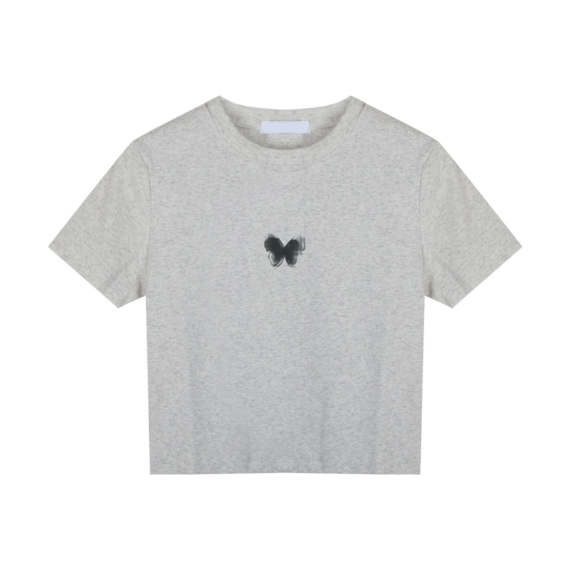kumikumi slim fit midriff-baring printed short-sleeved T-shirt