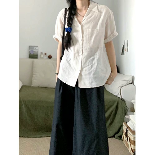 | nameOriginal | kumikumi solid color lapel high waist straight pants short sleeves |