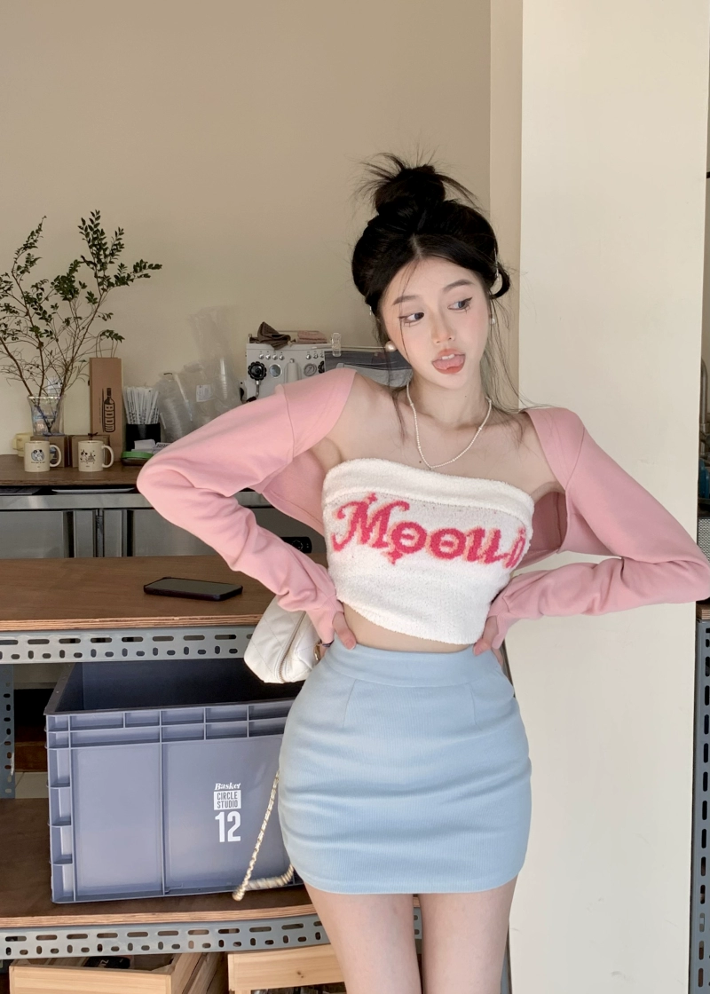 kumikumi sweet and spicy pink cardigan with hip-covering tube top