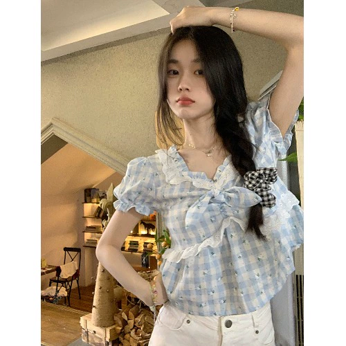 | nameOriginal | kumikumi sweet plaid lace patchwork shirt |