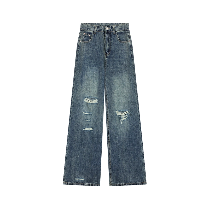 kumikumi vintage washed ripped high waisted wide leg pants